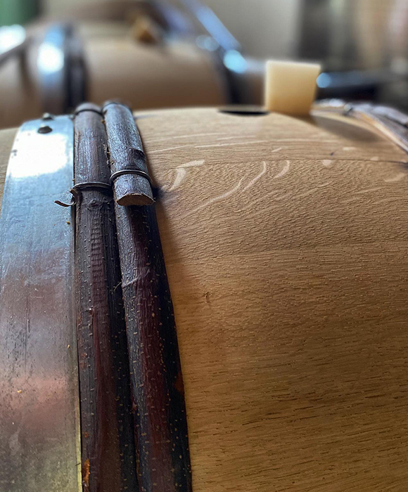 Er wordt hier niet gewerkt volgens dogma’s. De keuzes worden gestuurd door nauwkeurige observatie van de wijngaard en het klimaat: de oogstvolgorde per perceel, het samenvoegen van druivenrassen en percelen in één cuve, wel of niet ontstelen, licht kneuzen of juist niet – alles wordt afgestemd op wat de oogst vereist.