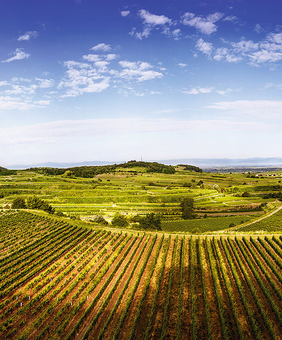 De speciale kenmerken van de Kaiserstuhl kunnen worden beschreven met de drie-eenheid vulkaan, löss en warmte. Het klimaat, de machtige terrassen van vruchtbare löss, bergen en heuvels met bodems van verweerd, warmtevasthoudend vulkanisch gesteente vormen een prachtige basis voor de onmiskenbare, subtiele mineraliteit en de heldere, bijzonder gelaagde smaak van onze wijnen.